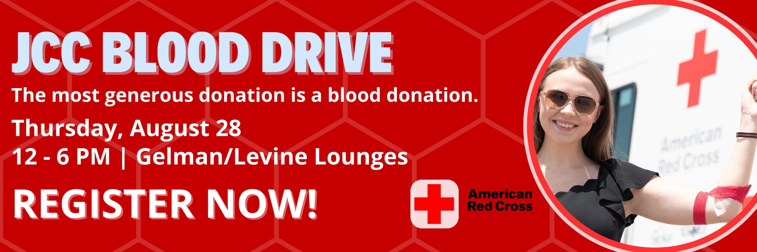 Donate blood at our Annual Blood Drive, here at the JCC on Thursday, August 28 from 12-6 PM!